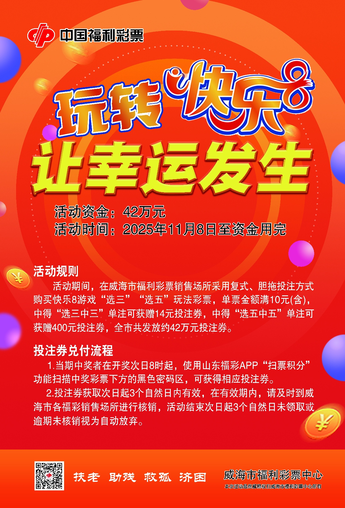 威海福彩“快樂8”營銷,11月8日開啟,選三、選五玩法獎(jiǎng)上加獎(jiǎng)