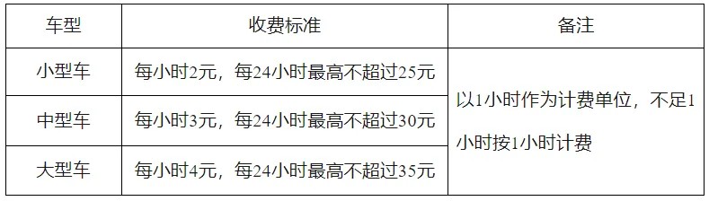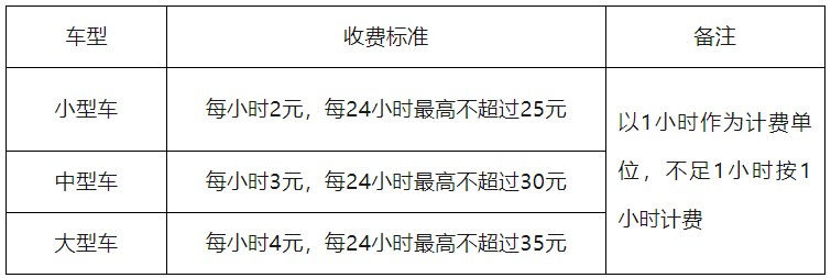 停車時(shí)間不超過1小時(shí)(含)不收費(fèi),新能源汽車不超過2小時(shí)(含)不收費(fèi),超過免費(fèi)時(shí)長(zhǎng)后: