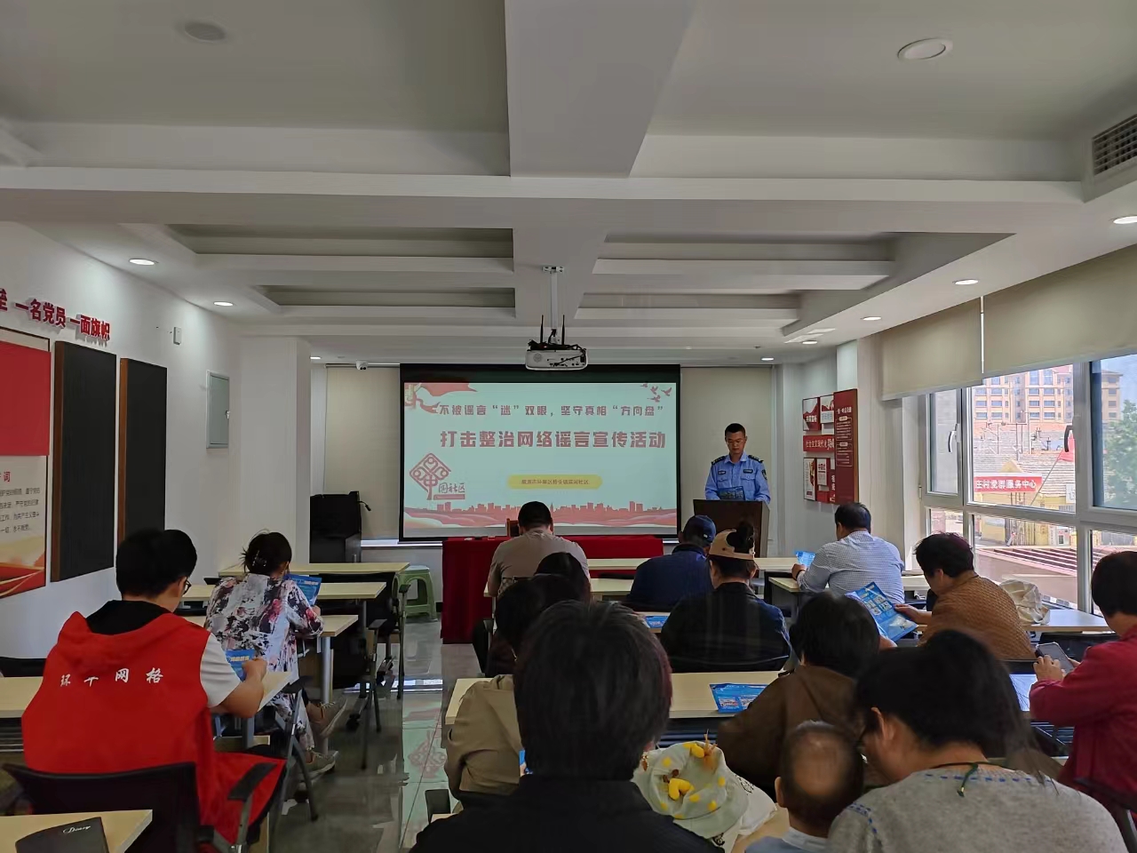 為深入推進(jìn)打擊整治網(wǎng)絡(luò)謠言專項行動,有效凈化網(wǎng)絡(luò)環(huán)境,提升社區(qū)居民網(wǎng)絡(luò)道德素養(yǎng),近日,橋頭派出所組織民警到濱河社區(qū)開展“不被謠言迷雙眼,堅守真相方向盤”打擊整治網(wǎng)絡(luò)謠言宣講活動。
